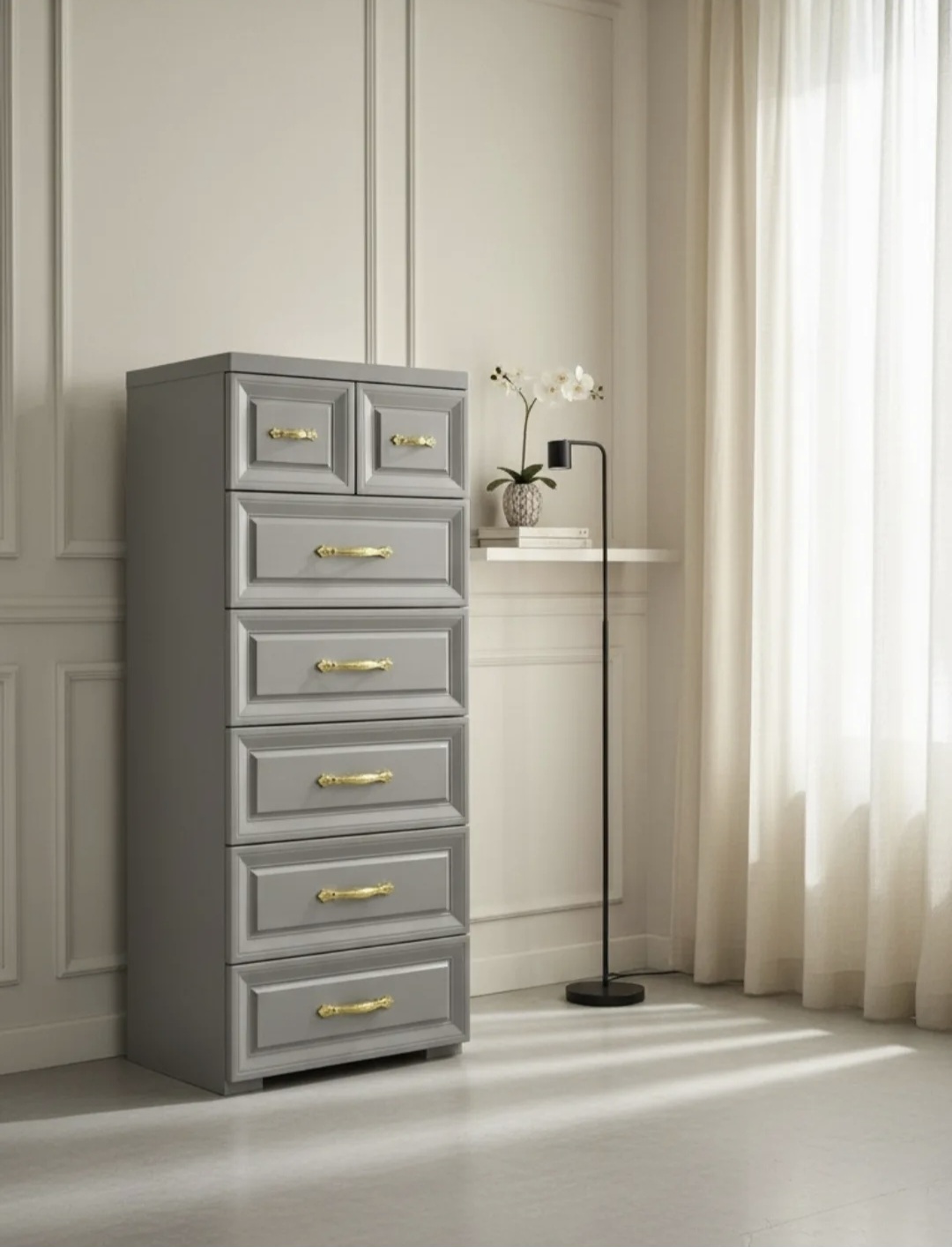 خرید دراور پلاستیکی ۶ طبقه ۷ کشو رنگ طوسی مدل اس ۶