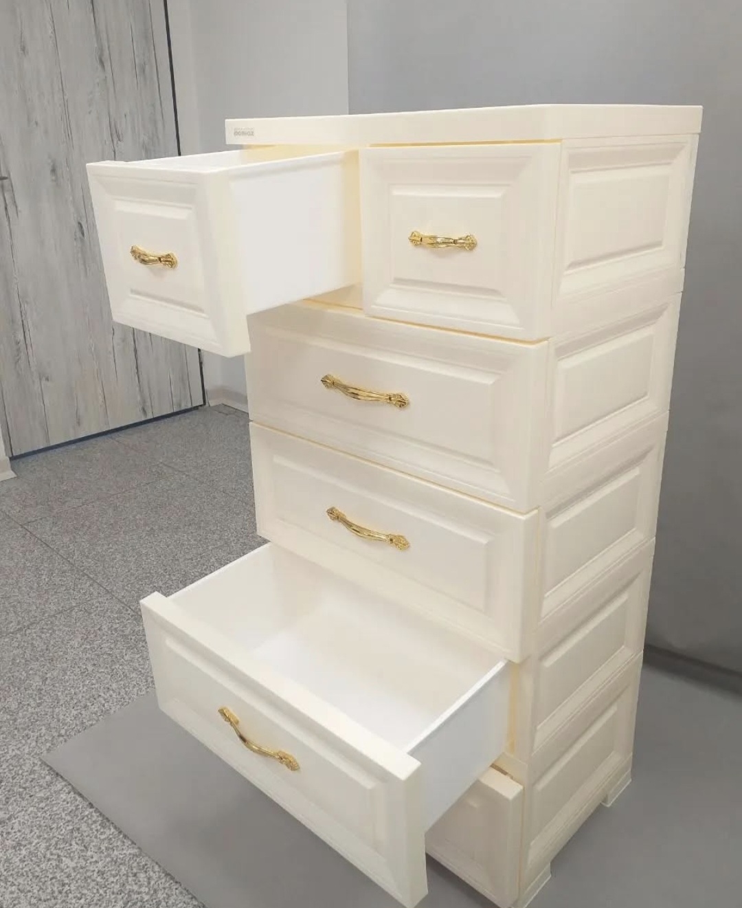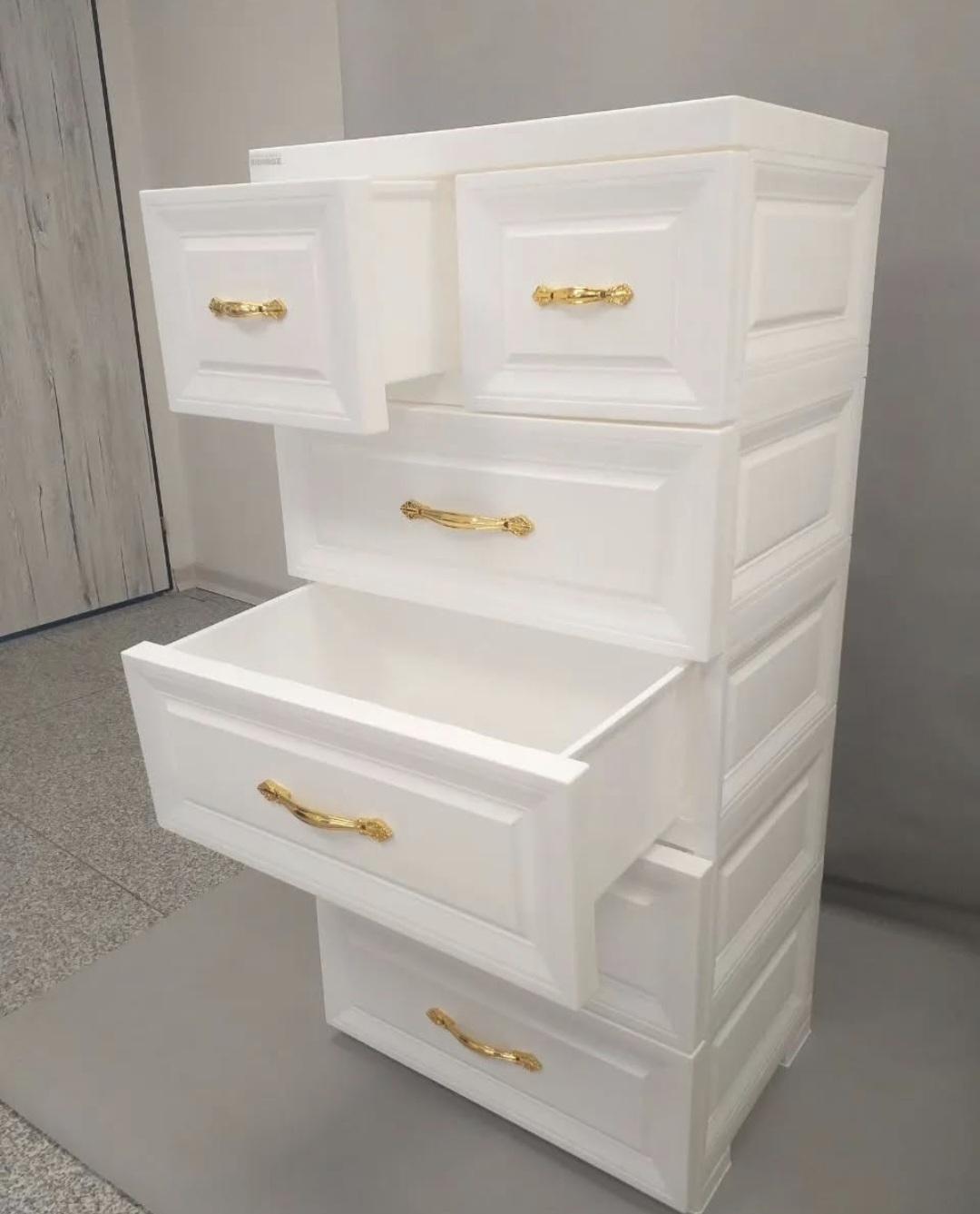 دراور پنج طبقه ممتاز پلاستیک،چهار کشو بزرگ با دو کشو کوچک،دارای پایه،جنس پلاستیک فشرده،عرض ۵۸ سانت،طول ۴۲ سانت،ارتفاع ۱۲۱ سانت با پایه،قابل شستشو،پر کاربرد در اتاق،محل کار و ابزار،خدمات پس از فروش دارد