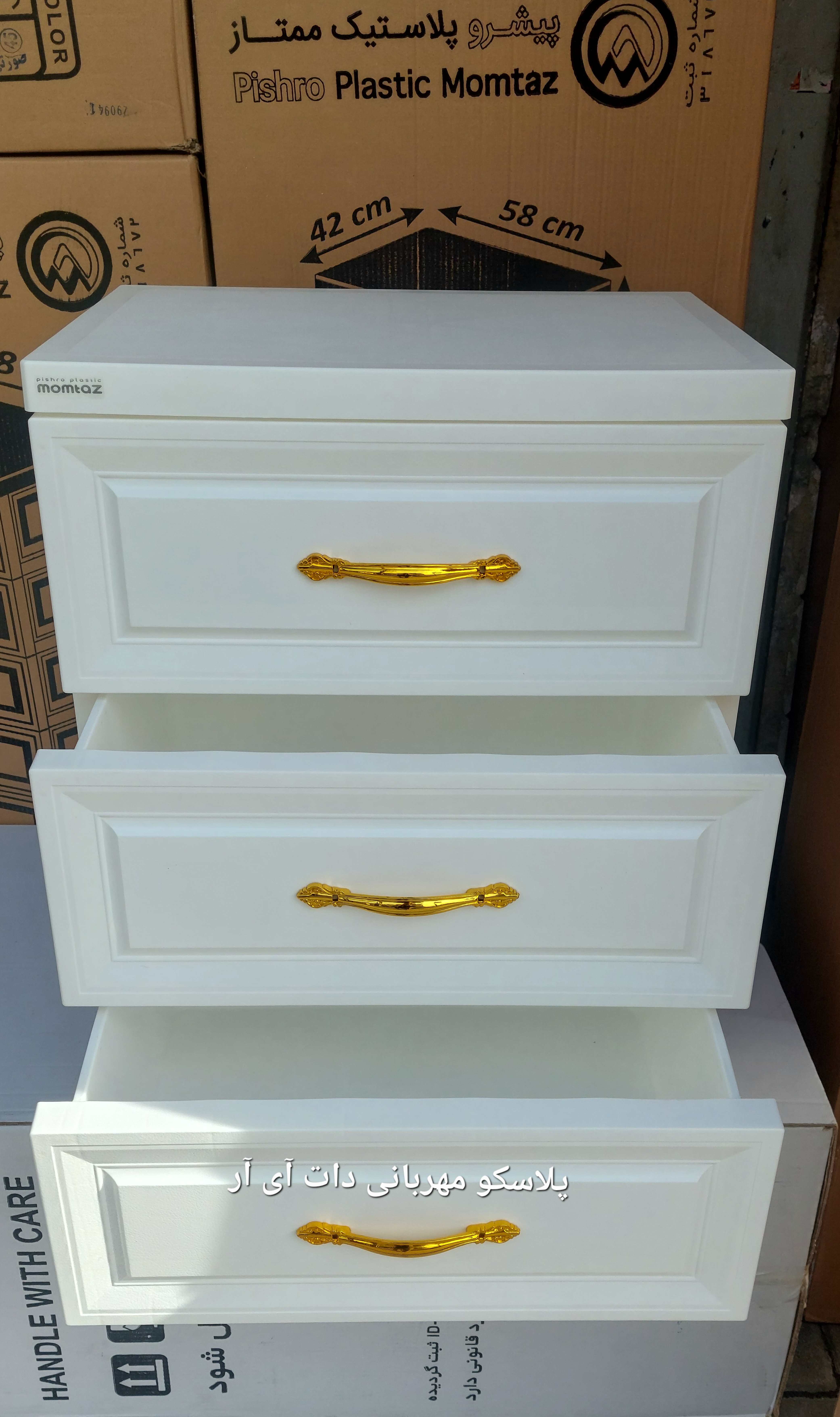 دراور کشویی سه طبقه ممتاز پلاستیک به دلیل وزن پایین،نداشتن ریل،قابل شستشو بودن،جا به جایی آسان،دوام بالا و کیفیت ساخت نسبت به چوبی جایگزین مناسبی می باشد،فضای داخل کشو ها با ارتفاع ۱۹ سانت و عرض داخلی ۵۳ سانت در ۳۵ سانت این امکان را به شما برای استفاده بهینه در اختیار میدهد،دستگیره های کشو به دلیل استاندارد بودن با دستگیره های ام دی اف در بازار قابل تعویض می باشد برای هماهنگی با محیط دلخواه شما،این سبک از کشو تمام بزرگ به سفارش پخش پلاستیک مهربانی برای مشتریان ارائه می شود.