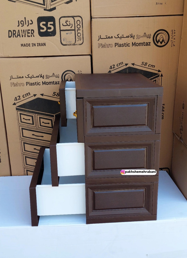 دراور پلاستیکی ۳ طبقه ممتاز پلاستیک | فایل کشویی قهوه ای