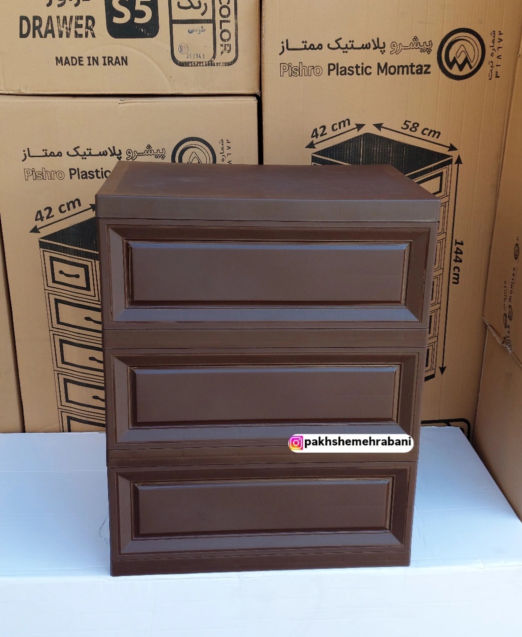 دراور پلاستیکی ۳ طبقه ممتاز پلاستیک | فایل کشویی قهوه ای