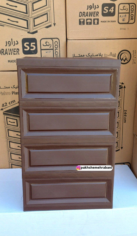 دراور پلاستیکی کشویی ۴ طبقه ممتاز پلاستیک | فایل کشویی قهوه ای