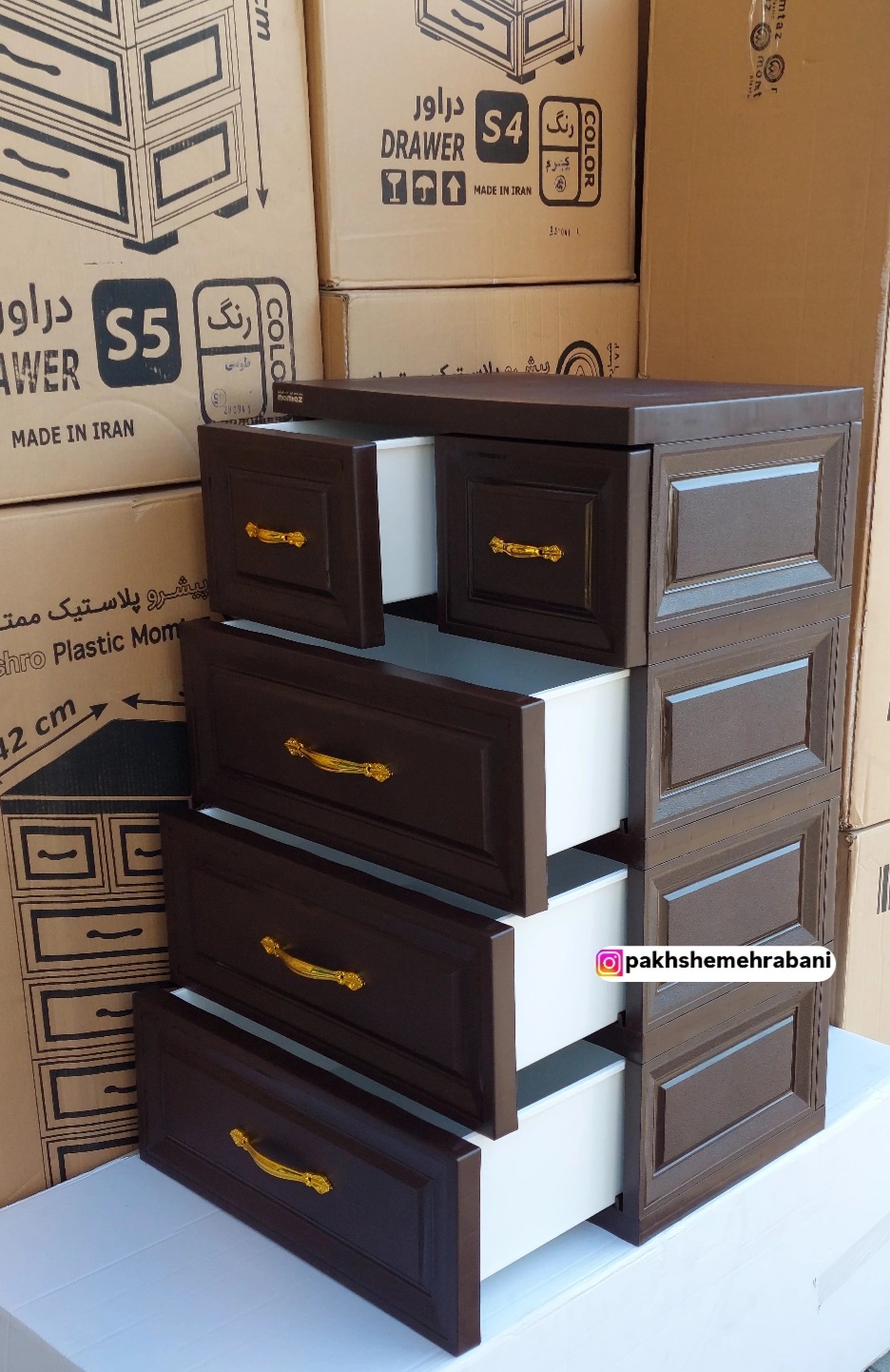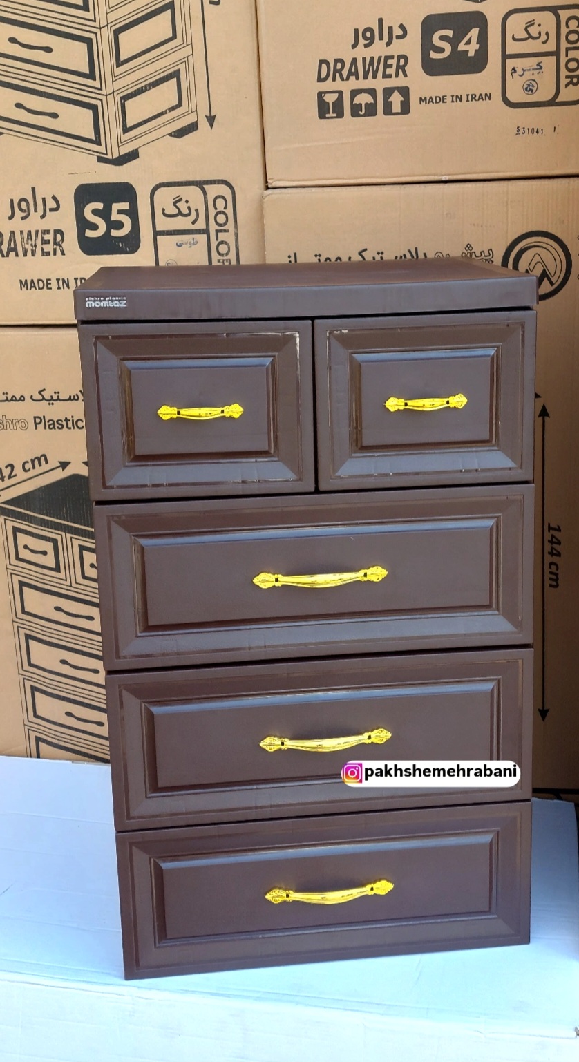 دراور پلاستیکی کشویی ۴ طبقه ممتاز پلاستیک | فایل کشویی قهوه ای