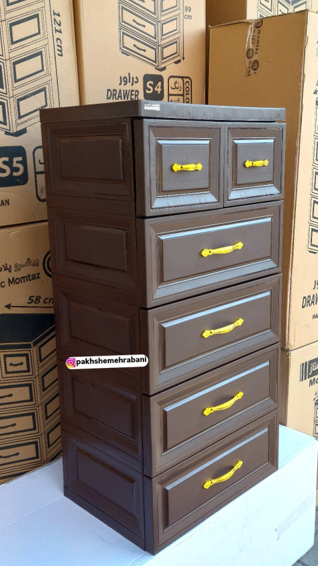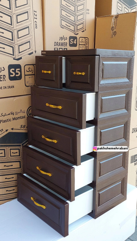 دراور پلاستیکی ۵ طبقه ممتاز پلاستیک | فایل کشویی قهوه ای