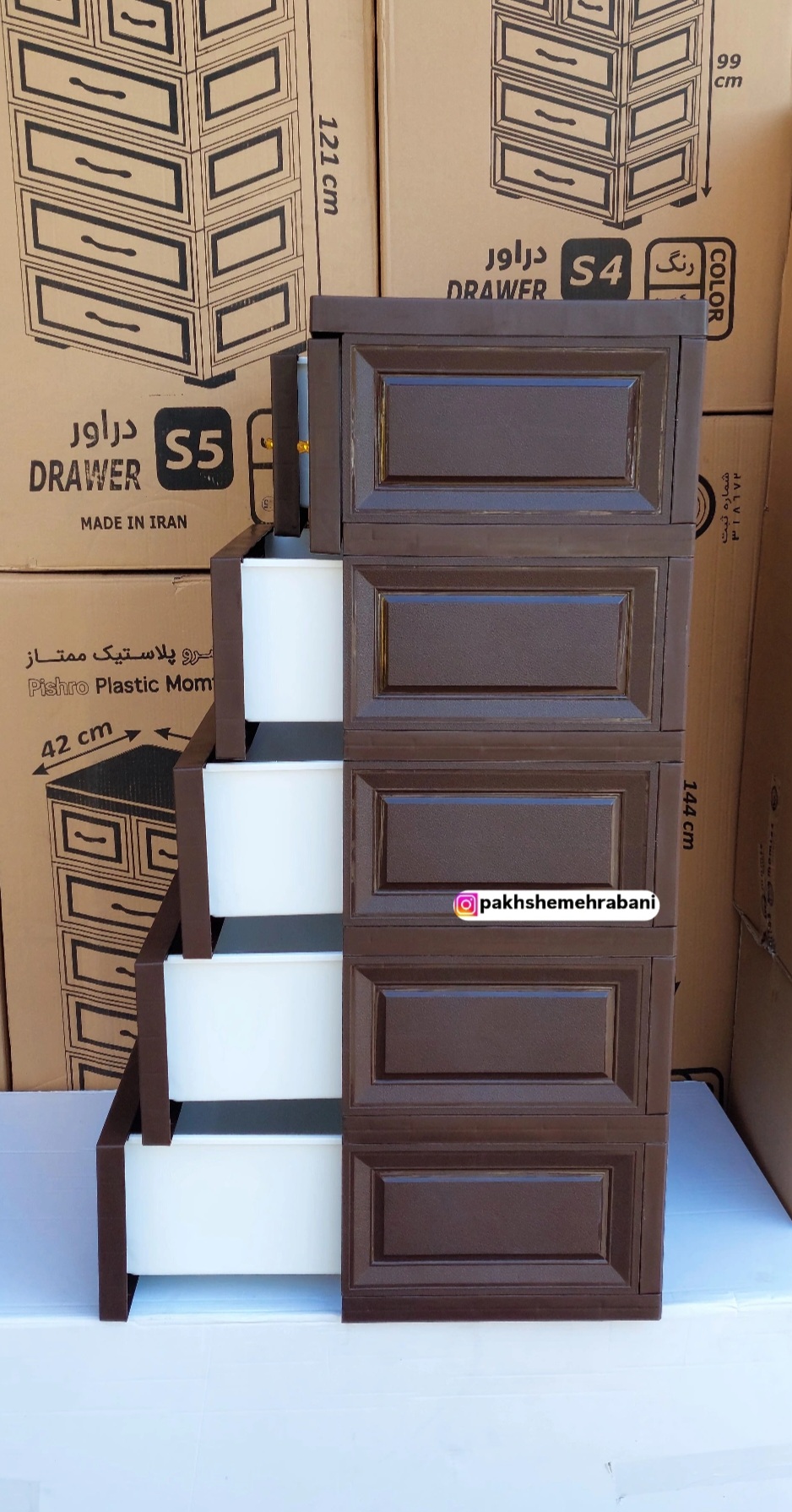 دراور پلاستیکی ۵ طبقه ممتاز پلاستیک | فایل کشویی قهوه ای